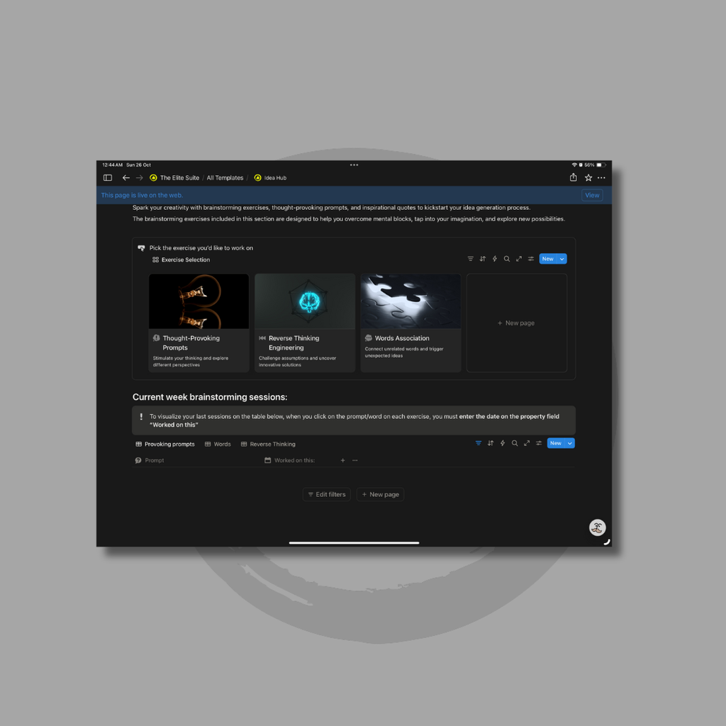 The Idea Hub is a Notion template designed to help you generate, organize, and refine ideas — whether you’re brainstorming for business, content, or personal growth. It transforms inspiration into action through structure and play.